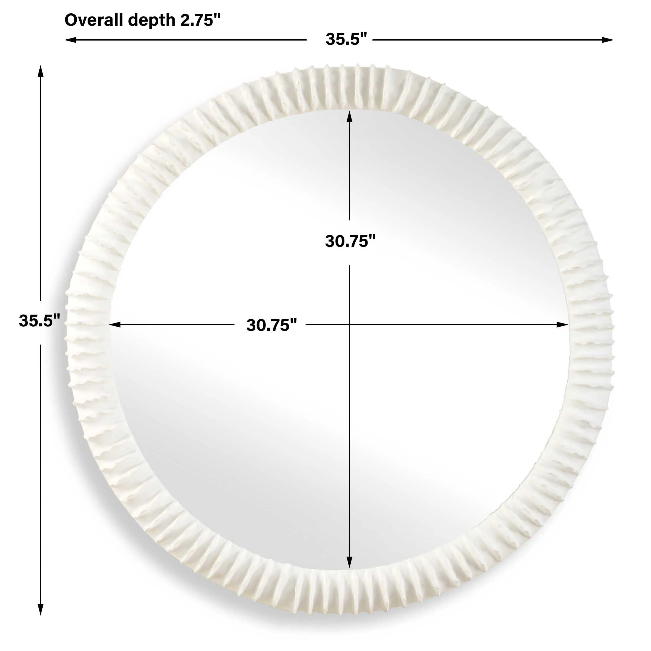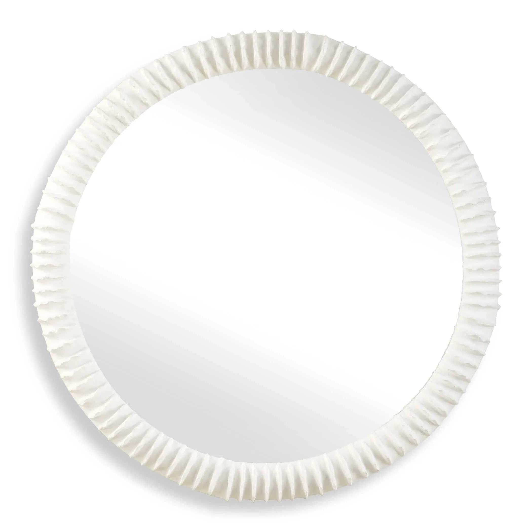 The Akiko Round Mirror Features A High Fired Ceramic Base Adorned With Beautifully Crafted Matte White Ruffles, Reminiscent Of Flowing Waves, Adding A Touch Of Nautical Charm.
