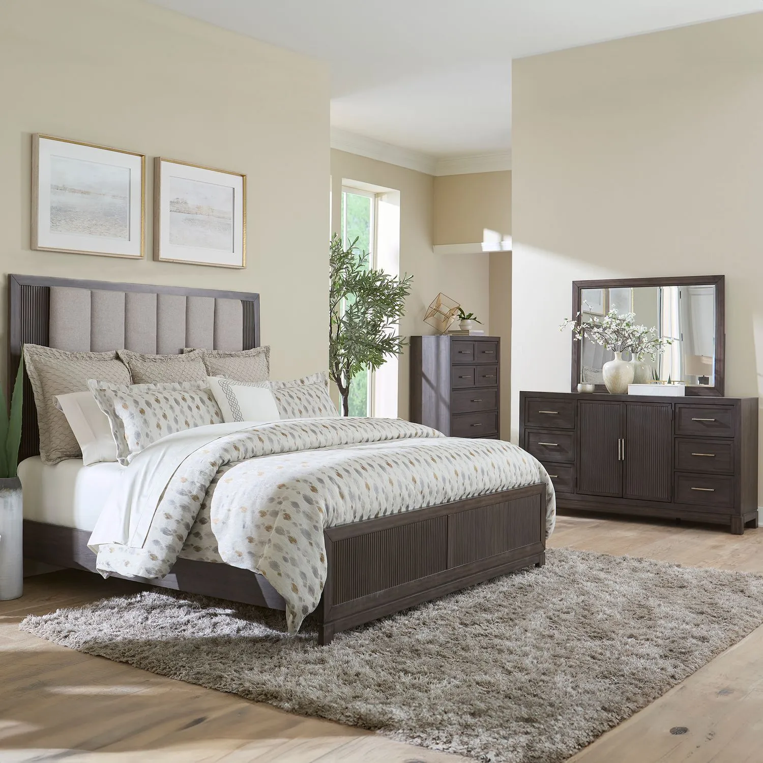 - Textured Gray Channeled Upholstered Panels