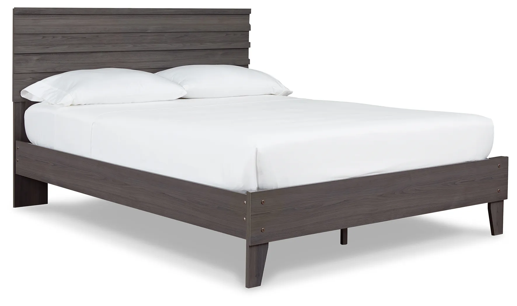 With clean lines evoking a mid-century modern mood, this queen panel platform bed is designed to bring harmony to your bedroom retreat. Finished in a warm gray that enhances the soothing sensibility.