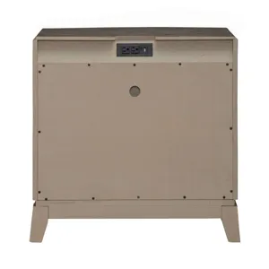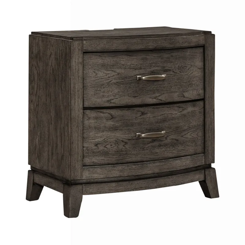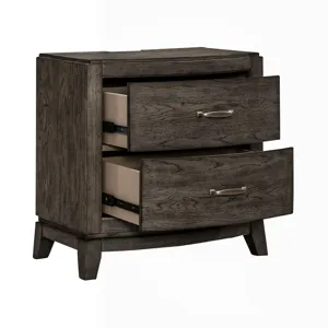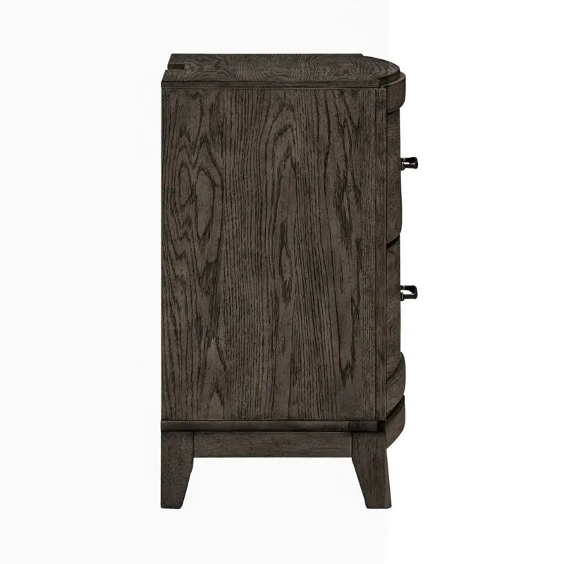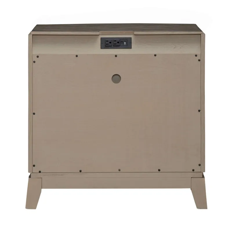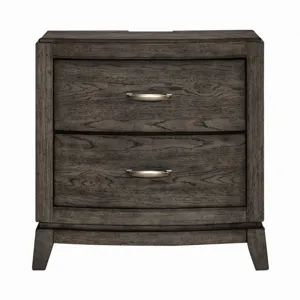 Create a calm and peaceful oasis with the Avalon nightstand with charging station. Crafted with excellence using Rubberwood solids and Acacia veneers, this nightstand features a Coffee Bean finish. The narrative of the Avalon nightstand begins with its graceful bow shaping; a design choice that adds a touch of artistry to its silhouette. The step top molding further accentuated its visual appeal, creating a seamless transition between the top surface and the body of the nightstand. Together, these elements form a design symphony that brings traditional charm into the contemporary realm. The Avalon nightstands floating base, elegantly lifted by angled tapered feet, contribute a sense of lightness and modernity to the piece. The visual allusion of the nightstand hovering above the floor not only adds an airy ambience to the room, but also showcases a blend of classic and mid-century design elements, creating a harmonious balance. Functionality takes center stage with the two drawers. The top drawer is adorned with premium felt, providing a luxurious sanctuary for delicate items. The bottom drawer is embraced with a cedar lined panel. Each drawer is accented with Antique Brass bar pull hardware. The Avalon nightstand embraces the future with the built in charging station, a nod to modern living. The charging station is complete with 2 AC outlets, 1 USB-A and 1 USB-C charging ports, seamlessly integrating technology into its classic design. This innovation makes the nightstand not just a storage solution, but a hub of connectivity, catering to the needs of the contemporary lifestyle. Transform your bedroom into a haven of grace and convenience with the Avalon nightstand with charging station.