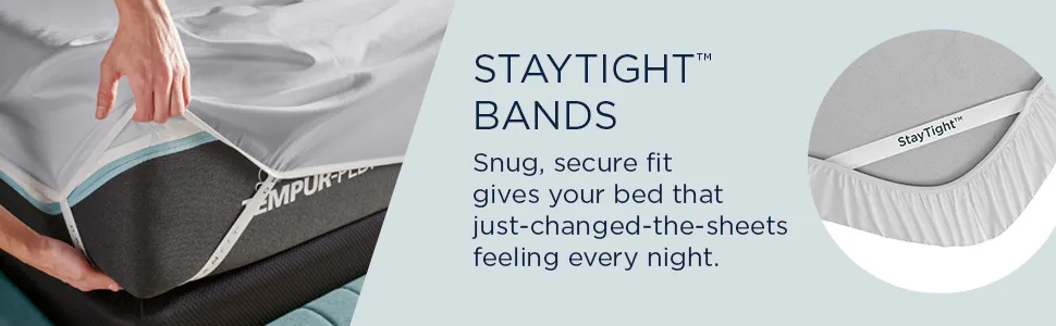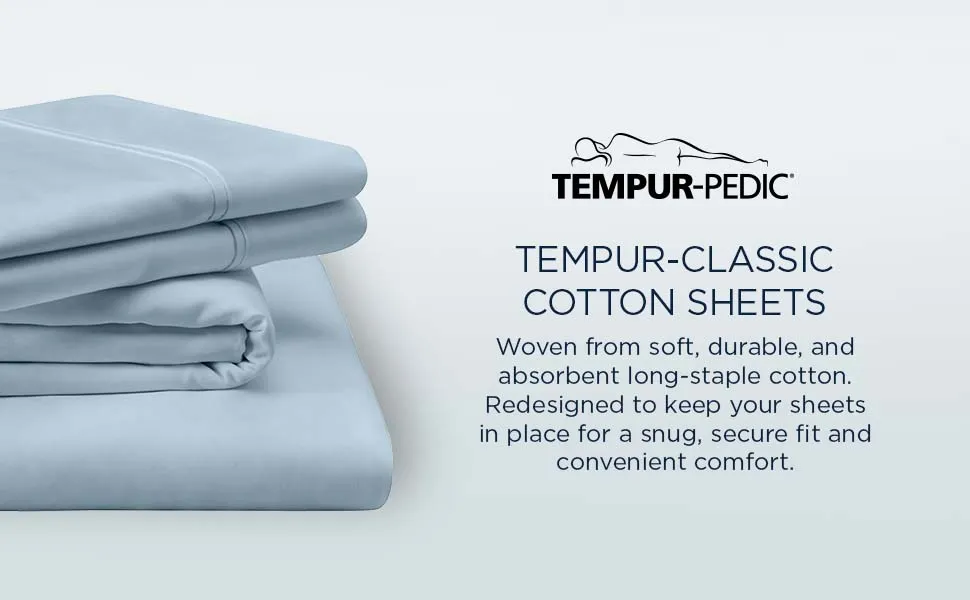 A classic for a reason. Woven from soft, durable and absorbent long staple cotton—the original performance fabric—these soft-meets-stretch, lightweight sheets have been redesigned for an even better fit on your Tempur-Pedic® mattress. The fitted sheet features unique four-way stretch and StayTightTM bands for a snug, secure fit, to keep them in place for convenient comfort, night after night—no bunching, no creeping corners and no readjusting needed.