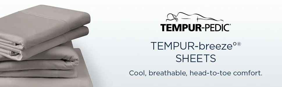 The ultimate match for your Tempur-Pedic® (Alt: Perfect fit. Peak performance.) Our most moisture-wicking sheets ever, made from premium, high-stretch, knit fabric that draws moisture away from your body to keep you sleeping comfortably. These sheets are optimized to perfectly complement your Tempur-Pedic® mattress, with fourway-stretch knit and our signature StayTight™ bands for a snug, secure fit, night after night—no bunching, no creeping corners, and no readjusting needed. Available in White, Sleepy Blue, Sandstone, or Graphite.