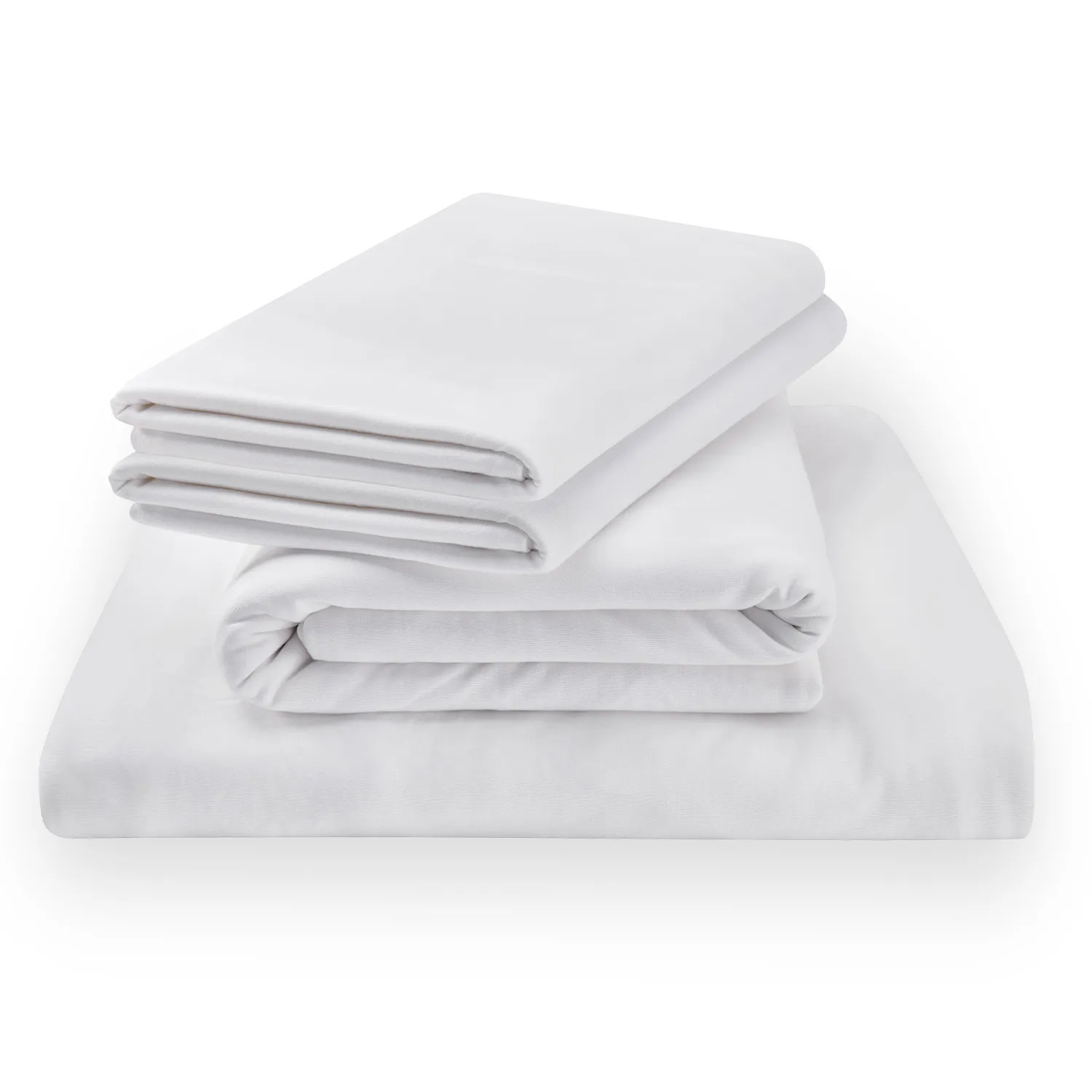 Soft, silky stretch. These 100% rayon from bamboo sheets feature a soft jersey knit with a comfortable stretch and natural moisture-wicking qualities. It all adds up to a silky-smooth feel—and thanks to our unique StayTight™ bands for a snug, secure fit, the fitted sheets will stay in place perfectly on your mattress- no bunching, no creeping corners and no readjusting needed Available in White, Sandstone, Sleepy Blue, Cool Gray, and Vintage Indigo.
