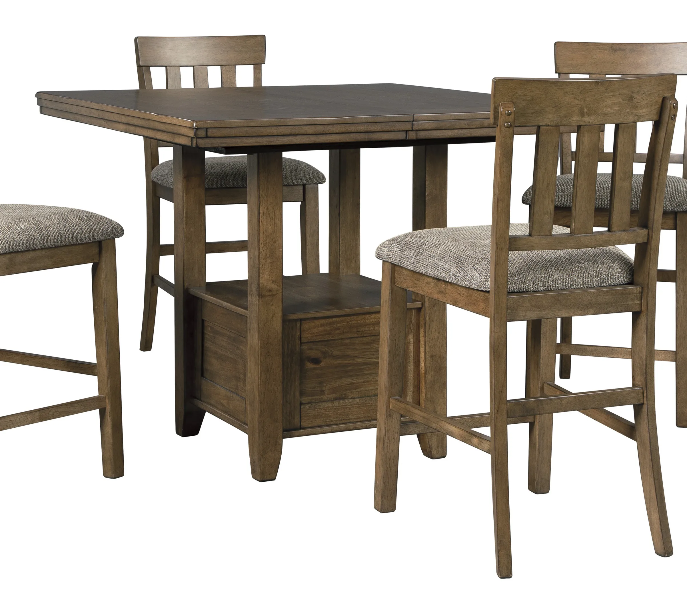 Satisfying your appetite for comfortably stylish living, this counter height dining extension table masters the art of refinement-without all the fuss and formality. Simply chic profile is enhanced with a double stacked top and base with built-in shelf. A warm, understated finish brings out the beauty of wood's natural grain.