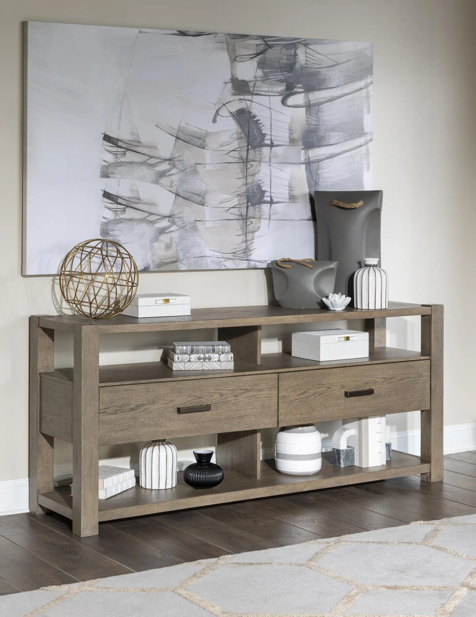 Sofa Table (2 Drawers, 2 Open Shelves)