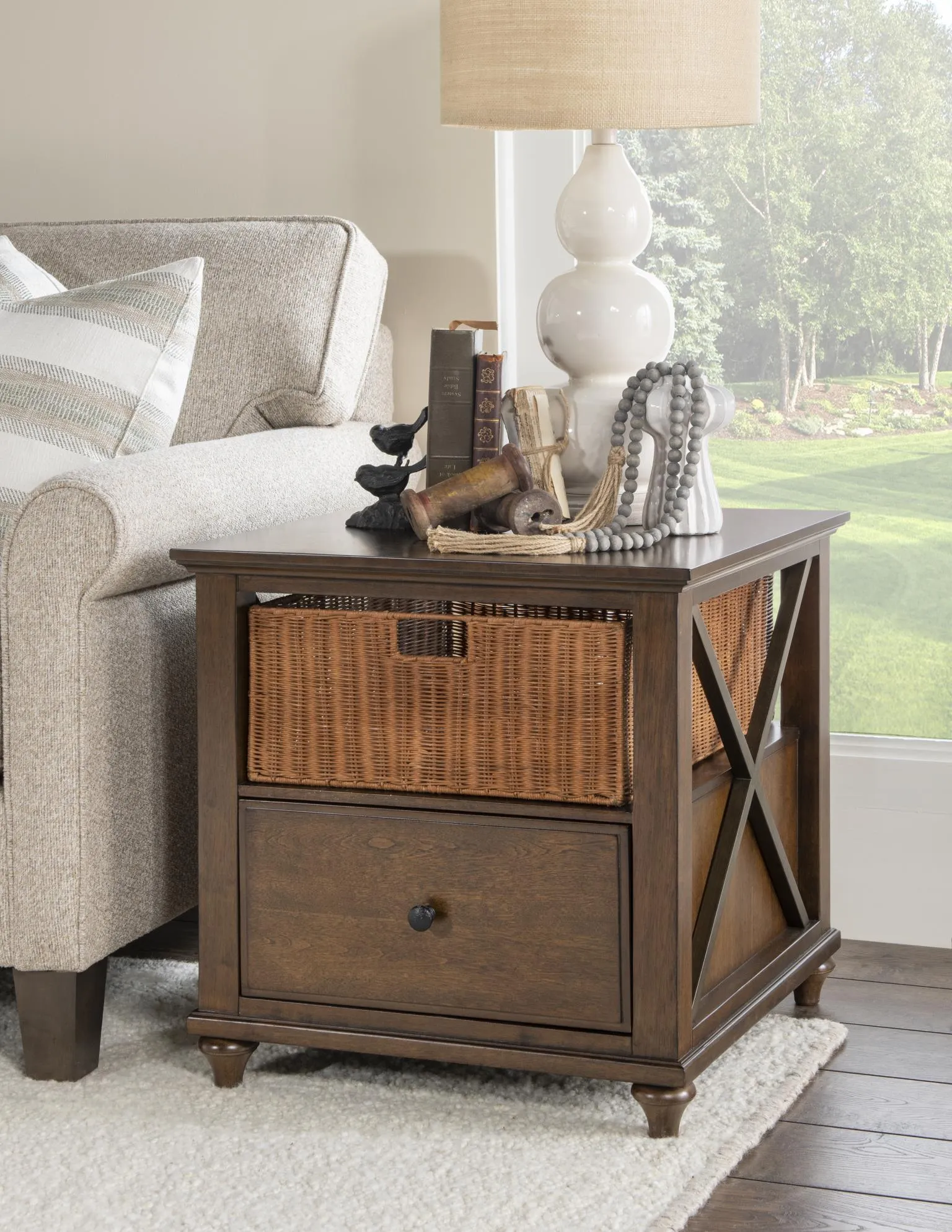 End Table (1 Basket, 1 Drawer, Power w. 2 outlets, 1 USB + 1 USB-C)