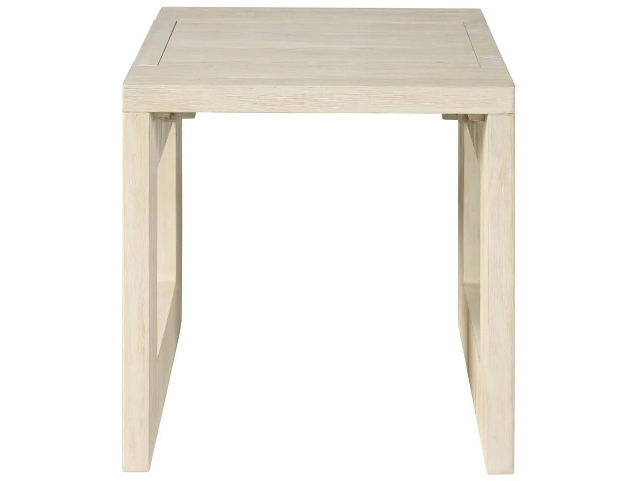 The River Rock End Table features a clean, architectural design with its open frame and sleek silhouette. Finished in a light and airy River Rock, this table adds a touch of modern sophistication to any living space. Its minimalist form and natural wood grain create a versatile piece that complements a variety of decor styles.