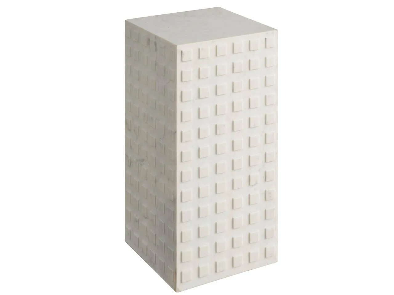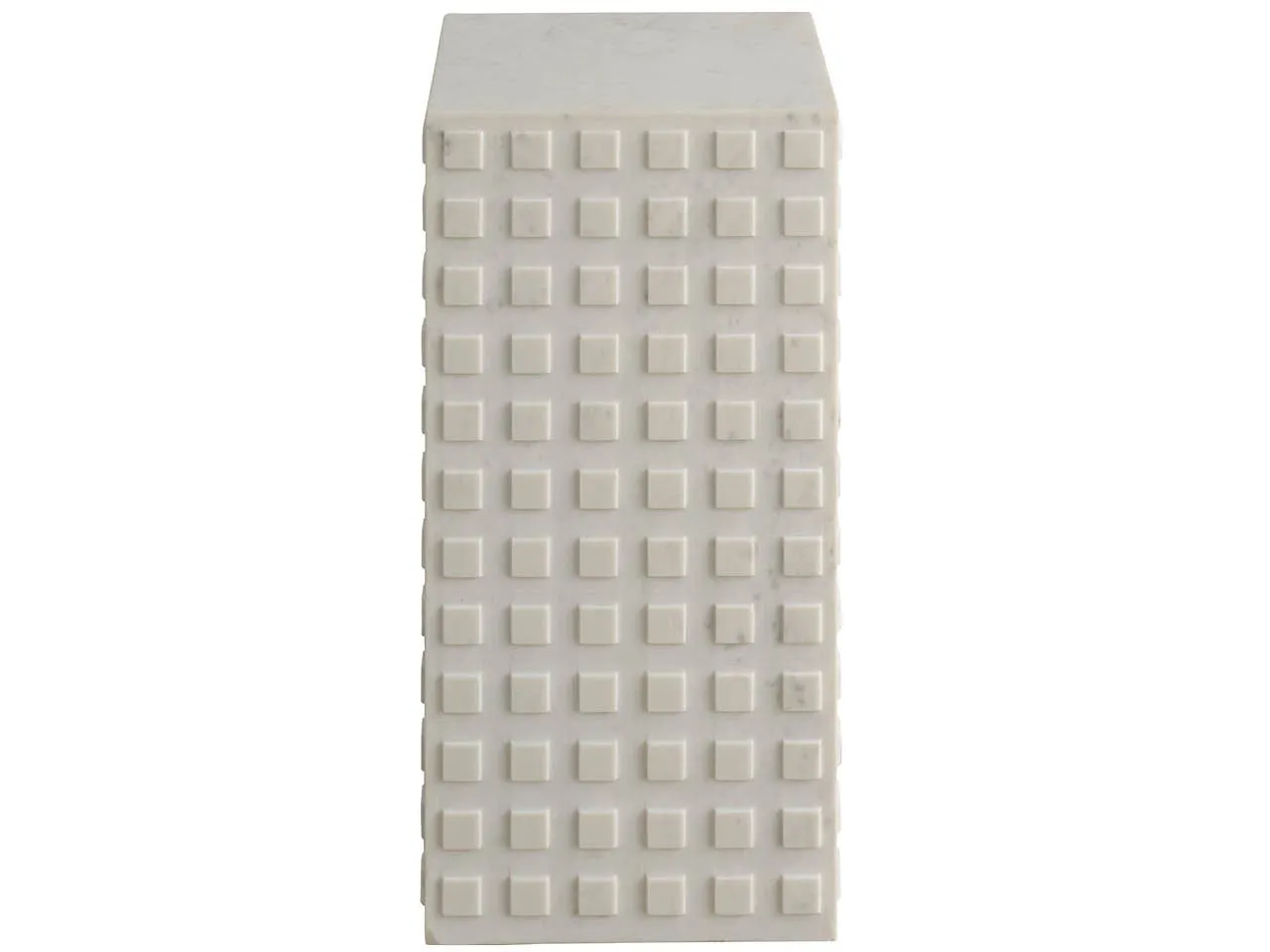 The Dwell Stone Accent Table brings a touch of architectural intrigue to your space. Crafted from solid stone, its cubic form features a textured, grid-like surface, adding a tactile and visually compelling element. This piece serves as a striking accent, functioning as a side table, pedestal, or sculptural object. Its natural stone finish and unique design make it a focal point in any contemporary setting.
