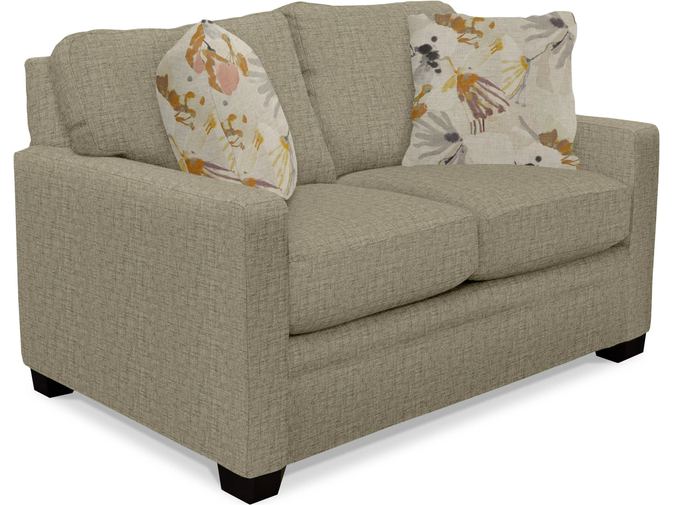 Construction Back: Webbing, loose, poly fiber fill in a channel bag, zipper access. Seat: Sinuous wire, block foam with poly fiber wrap, ventilated, reversible. Legs: 3.25'' x 2.88'' x 2.75'' wood pyramid, screw-in. Pillows: 2 x 20'' fiber fill. Optional upgrades: Frame Coil, Coil Cushion, feather blend pillows.
