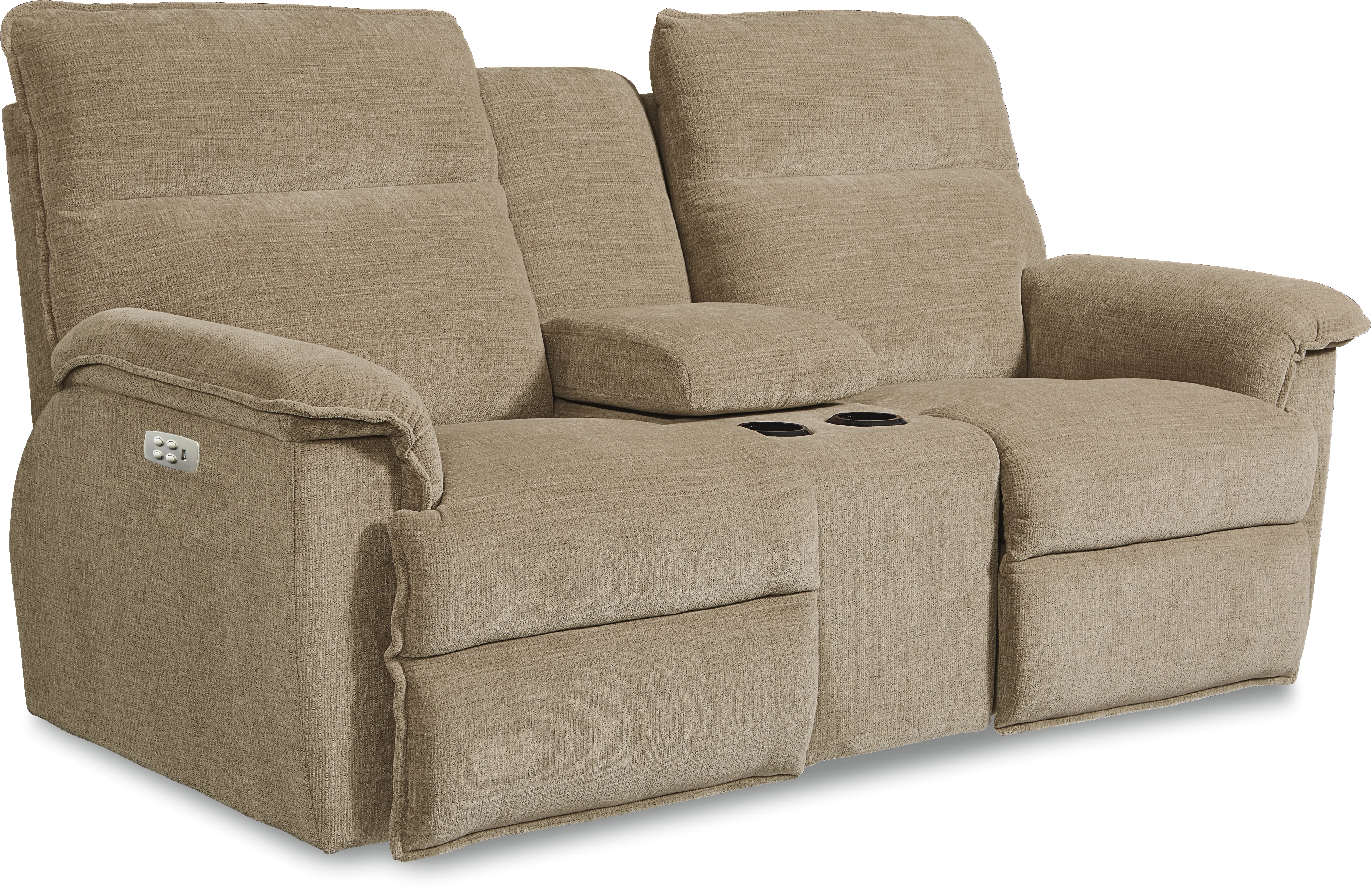 A tall back, pillow-soft seats and detailed flange stitching give Jay a casual look, but this family-friendly loveseat is all about function. A convenient middle console with hidden storage and two cup holders keeps everything you need right at your fingertips, while side power buttons let you relax and recline at the touch of a button. Go from upright to fully reclined in less than six seconds, as powered backs and chaise legrests move together to any reclining position. Independently adjust the power-tilt headrest to enjoy customized support of your head and neck while you relax, read or watch TV. Convenient built-in USB ports let you power up while you wind down, or truly unplug with our Go Cordless battery pack upgrade and place Jay anywhere in a room, no electrical outlet needed. With comfort, power and convenience, relaxing has never been easier.