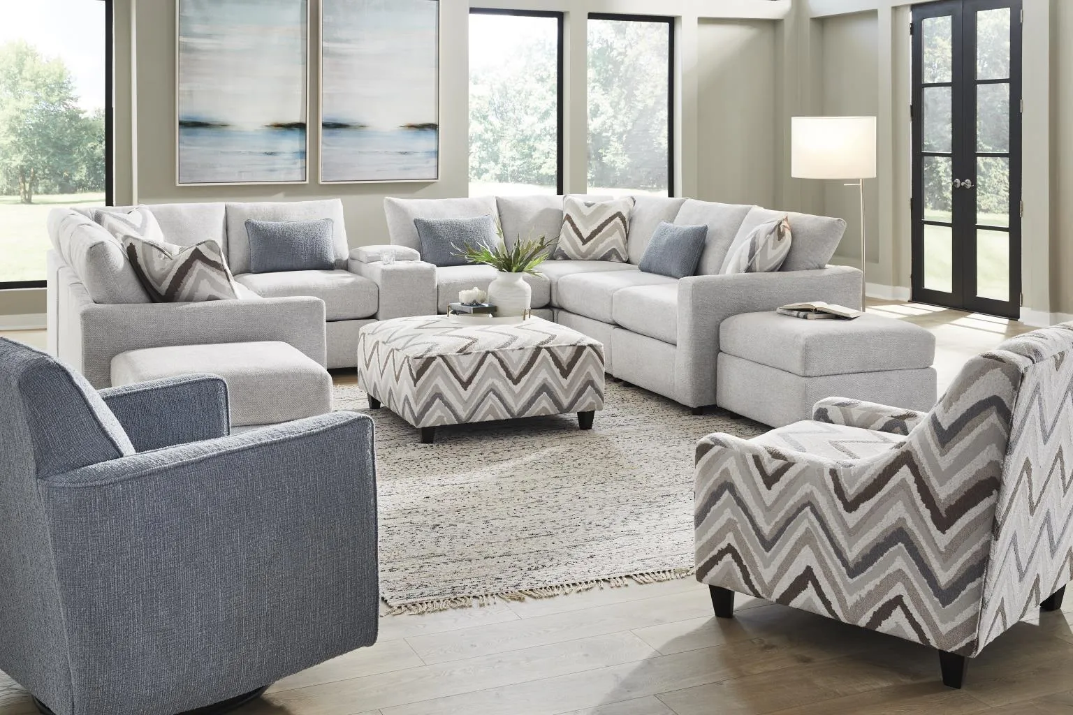 Queenstown Pebble 5 PC Sectional LAF CHair, RAF CHair, Corner, & 2 Armless Chairs.