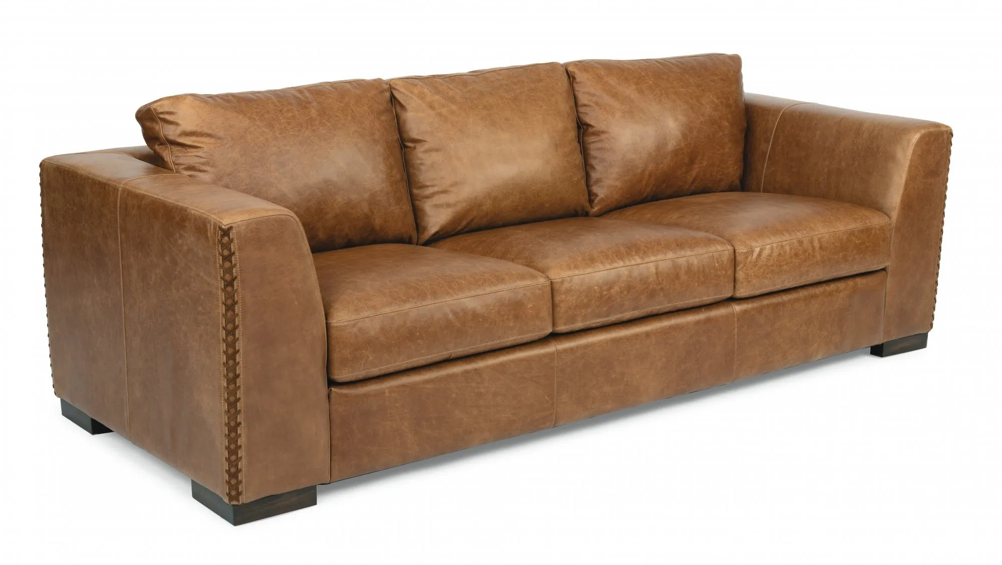 The cross-stitching detail along Hawkins wide, square arms is beautifully tailored for a sleek look and enhances its strong appeal. Square, wooden feet at the base and the picture-frame back provide a crisp look. Its square frame is enriched with its box seat and flip-down center console, adding beauty and function to Hawkins distinctive style