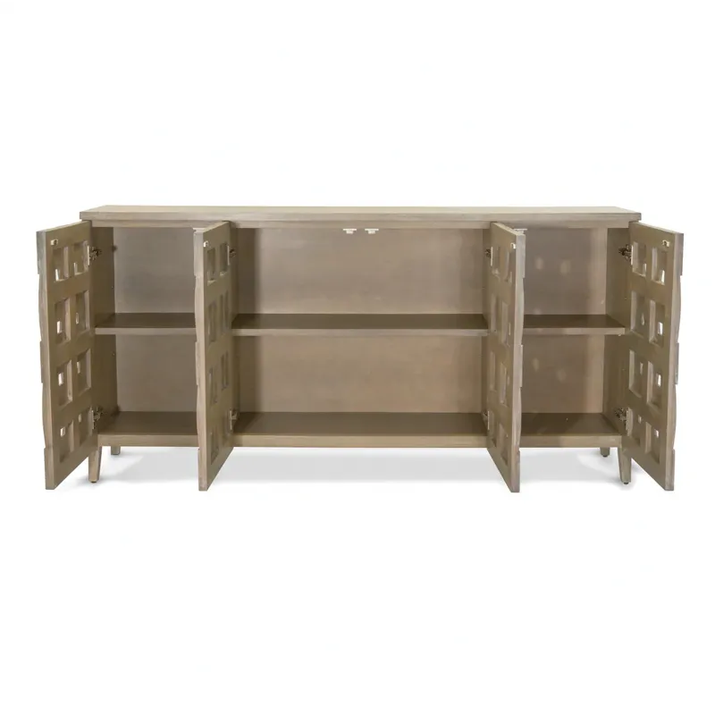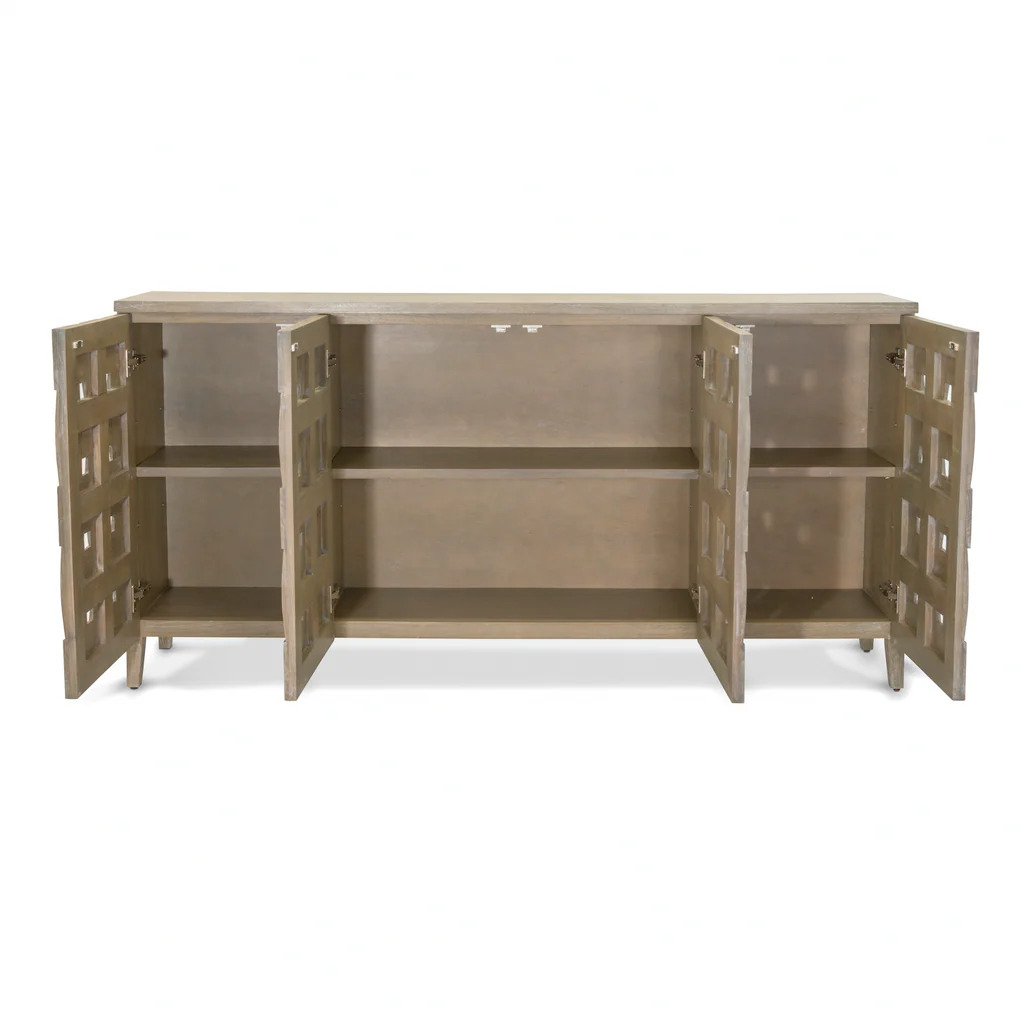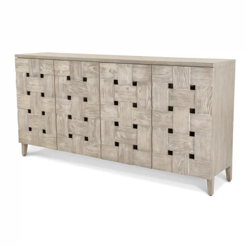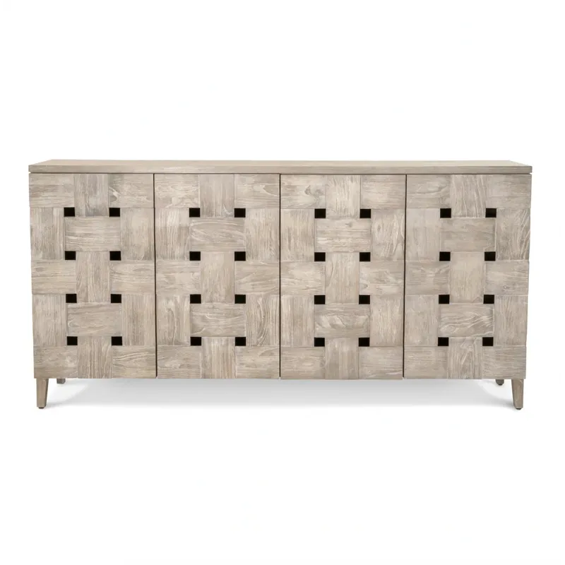 Wooden Weave 4-Door Credenza, Soft Close Doors