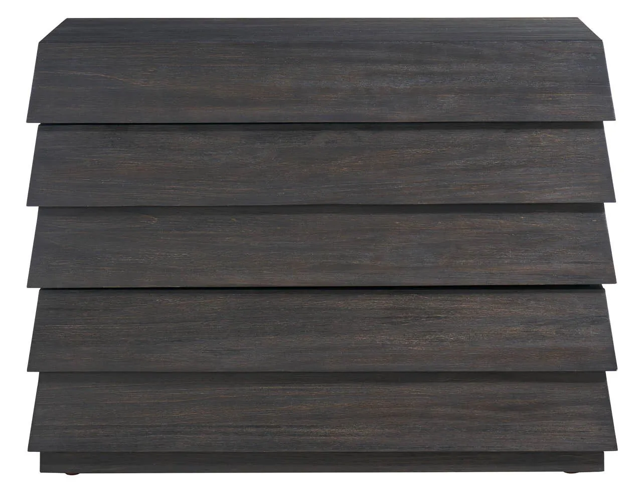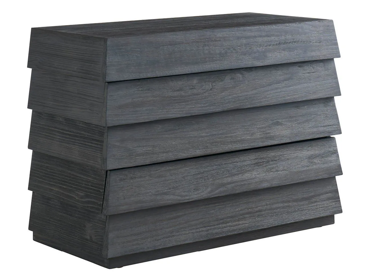 The Basalt Chest commands attention with its dramatic Basalt finish and striking lap-siding detail. Its tiered, waterfall-edge drawers offer a unique design element while providing ample storage. This chest serves as a bold statement piece, adding a touch of modern architectural flair to any room.