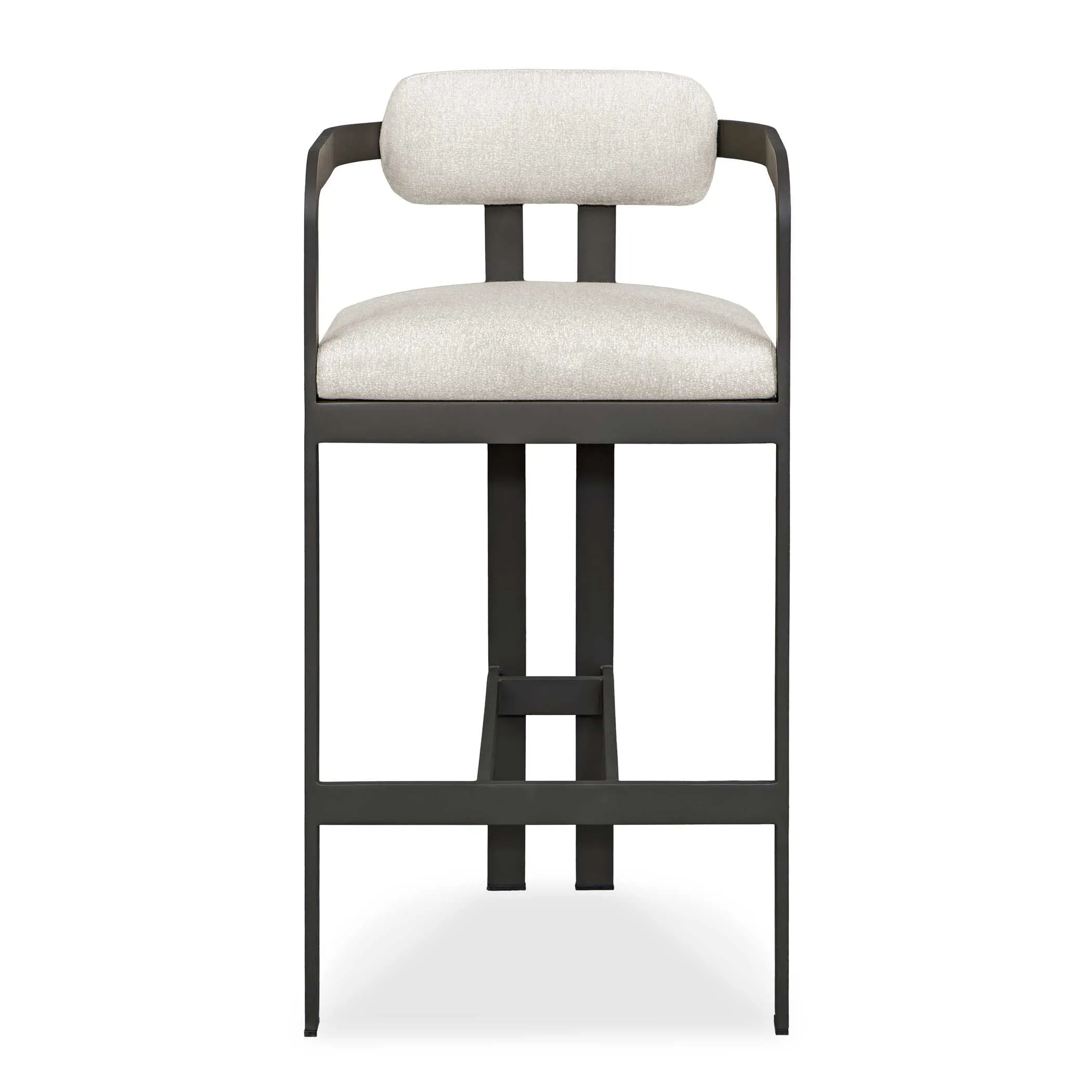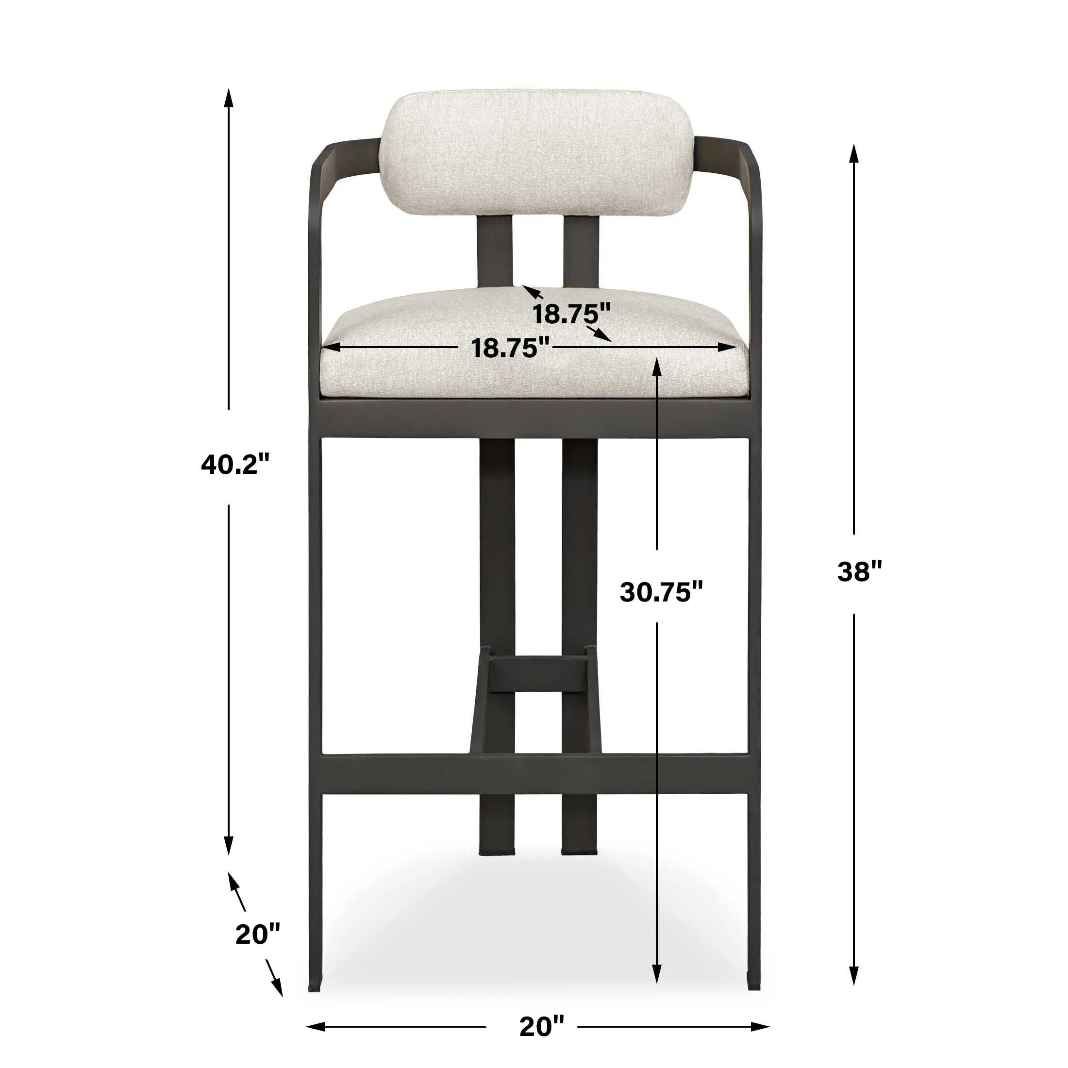 The Kalmar Outdoor Bar Stool Boasts A Sturdy, Powder Coated Aluminum Frame In A Sleek Java Black Finish Offering A Comfortable And Stylish Seating Solution For Outdoor Entertaining. The Seat And Floating Back Are Upholstered In Oyster White Solution Dyed Acrylic Fabric That Is Constructed To Withstand The Moisture And Dirt That Comes With Outdoor Use.